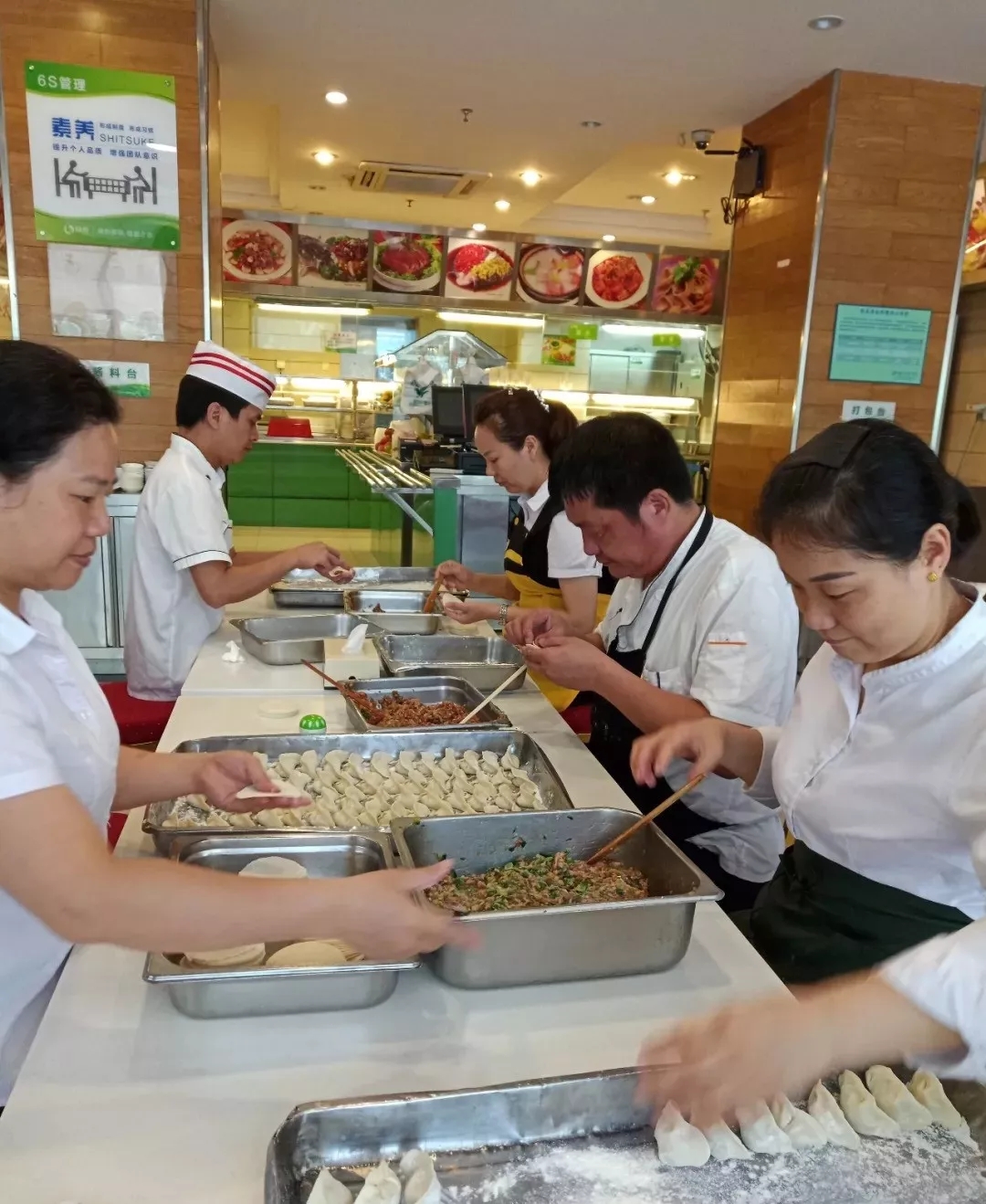 ▲臺風登陸期間,中廣核服綠源餐飲積極儲備餃子等防抗臺風應急食品,并運送至各應急點以保障用餐。僅東部分公司各餐廳,就加班加點完成臺風應急食品制作及儲備(按750人標準準備),其中烤蛋糕4500塊,面包2150個,礦泉水1500瓶,牛奶1200支,火腿腸2000根,榨菜1500包,有力地保障了臺風期間核電人的餐飲需求。