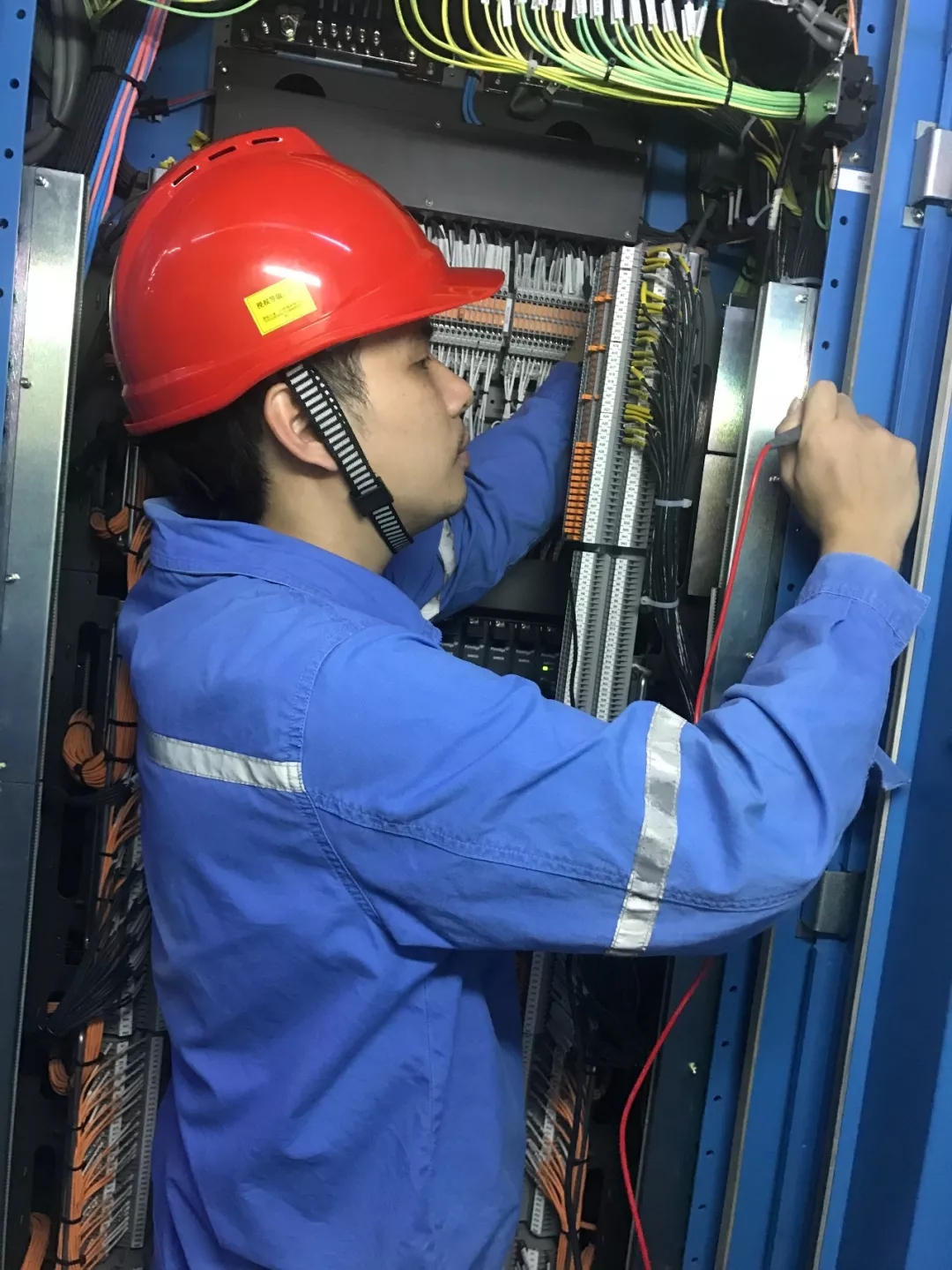 ▲臺風過后,機電公司員工迅速進行電器設備檢修,防范因臺風造成的設備故障風險。
