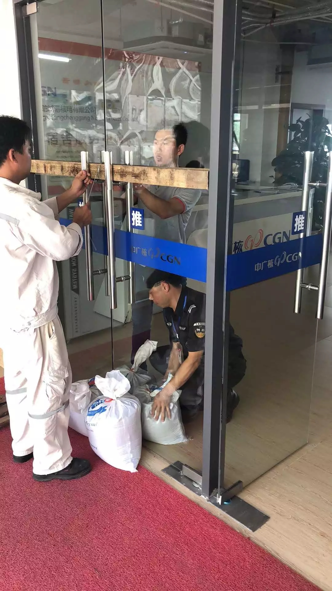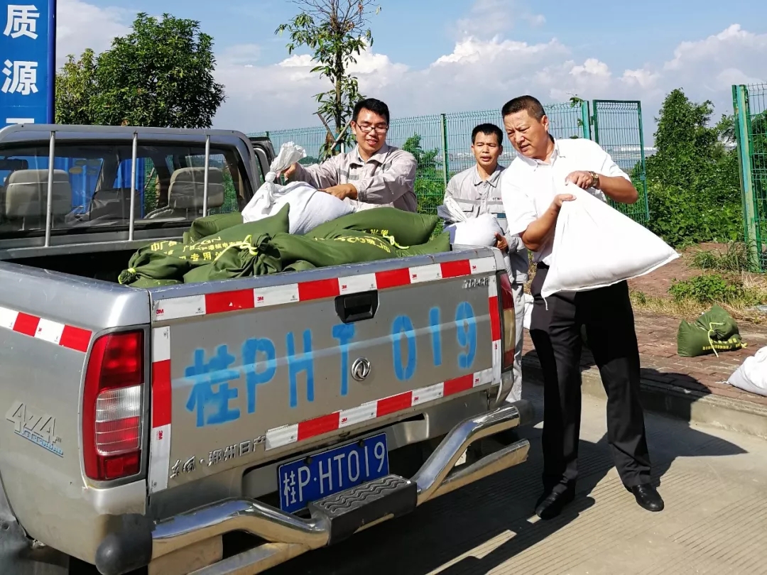 ▲臺風登陸前夕,防城港分公司等單位緊急布置防水沙袋,防止雨水倒灌進入室內等。