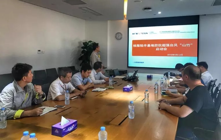 ▲臺風登陸前夕,中廣核服各單位召開防抗超強臺風“山竹”部署會,做好各項應急計劃。