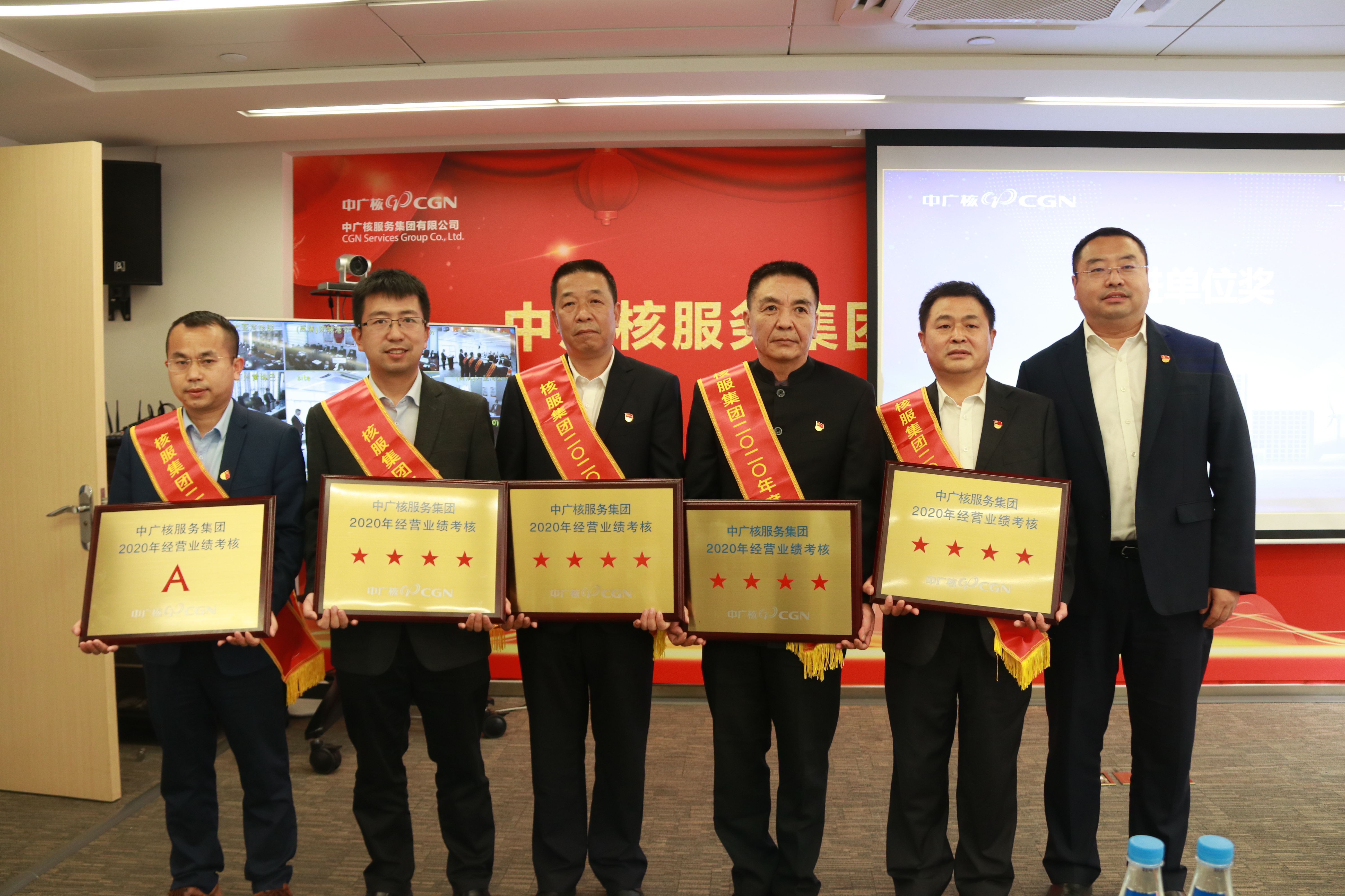 會議公布表彰了中廣核服成本管理、安全質量、人才培養、專項貢獻、先進單位、模范員工等領域的集體和個人獎項,并為獲獎單位、模范員工代表頒獎。會議還舉行了《2021年總經理部成員績效合約》簽訂儀式。先進單位代表陽江分公司、環通公司和模范員工代表趙陽、肖莉做了發言分享。