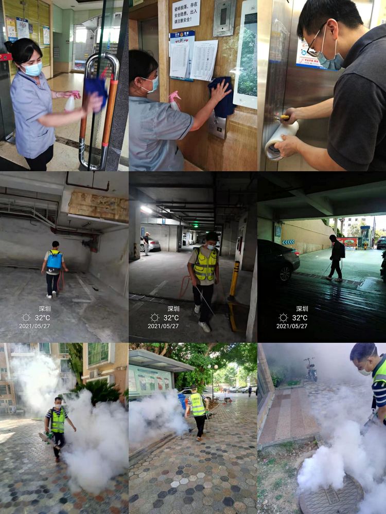 為了保障居民安全,核電物業各管理處不僅加強了人員出入管理,而且加大了環境方面的清潔消毒力度,為疫情防控,做足了功夫。持續開展"消毒行動",定時定點對社區內消毒。對進出社區的人員進行體溫測量,并要求佩戴口罩。此外,通過線上微信群提醒、線下大喇叭等渠道向廣大業主普及疫情防控知識。