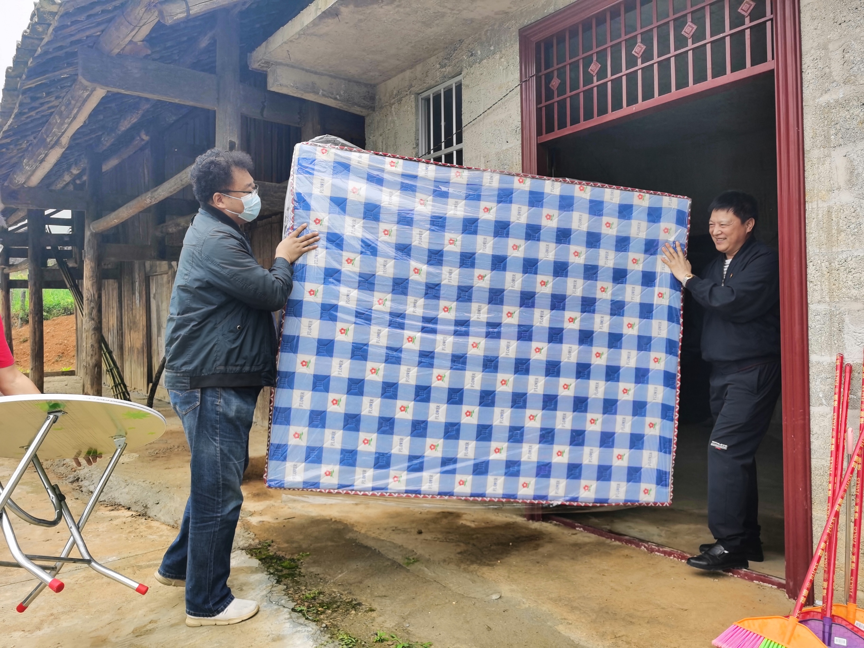 黨員同志們還來到2位五保戶家中,幫忙打掃完衛生,床、床上用品、桌、椅、垃圾鏟、掃把被一一搬入擺放整齊,五保戶的家中瞬間換上新顏。